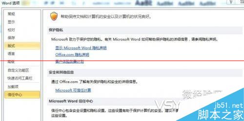1、打开Word"文件"中的""选项",选中"信任中心";