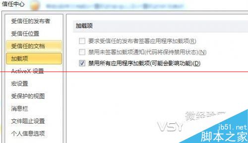 3、在"加载项"里选最后一个"禁用所有应用程序加载项";