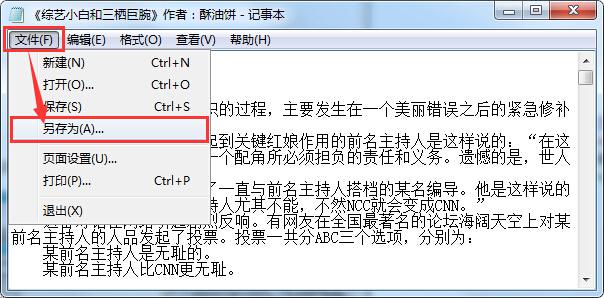步骤1:打开需要转换的txt文件,点击"文件"—"另存为"。