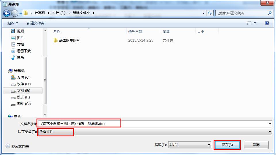 步骤2:在文件名称后面加".doc",格式是"XXX.doc",接着在保存类型一栏选择"所有文件",然后点击"保存即可。