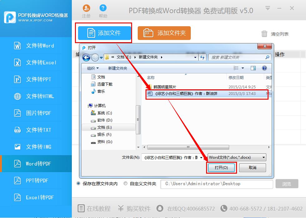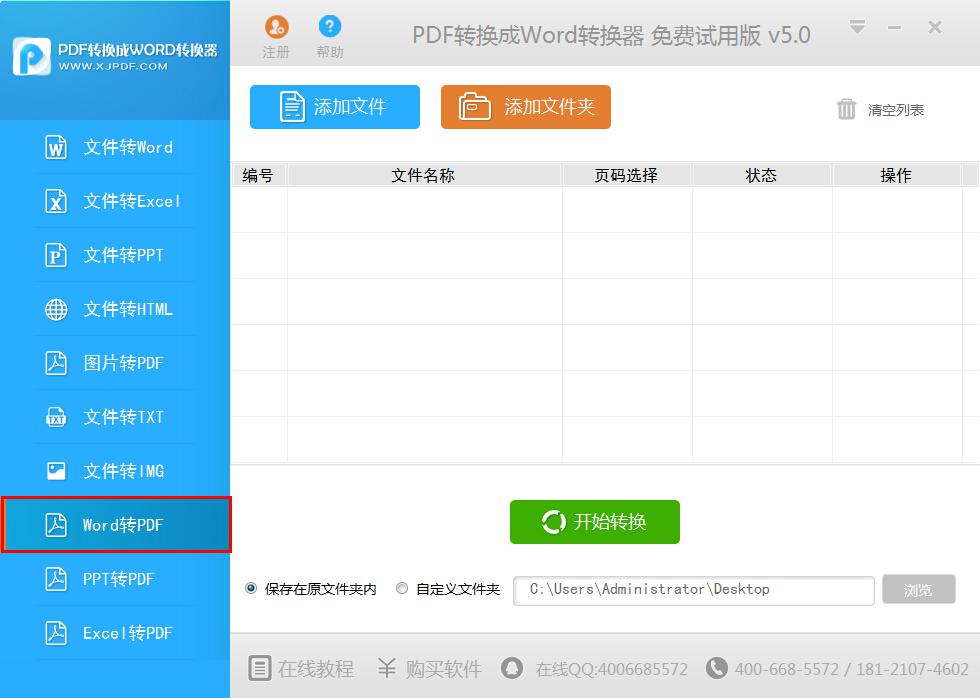 步骤4:点击"添加文件"按钮,将需要转换的:word文件添加到软件中,大家也可以直接将文件拖拽到软件中进行文件添加。