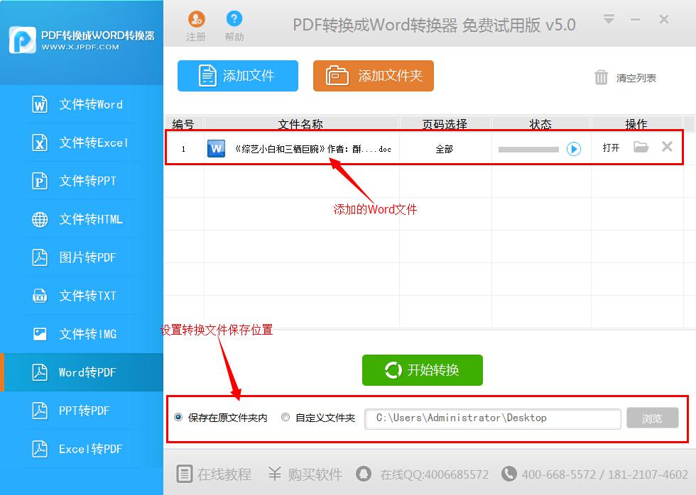 步骤5:文件添加完成,这里用户需要设置转换文件的保存位置,大家可以保存在原文件夹内,也可以自定义文件夹。