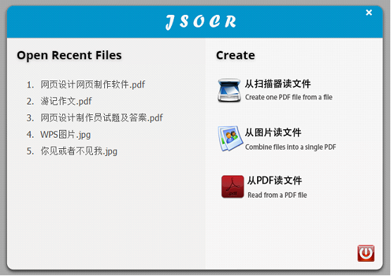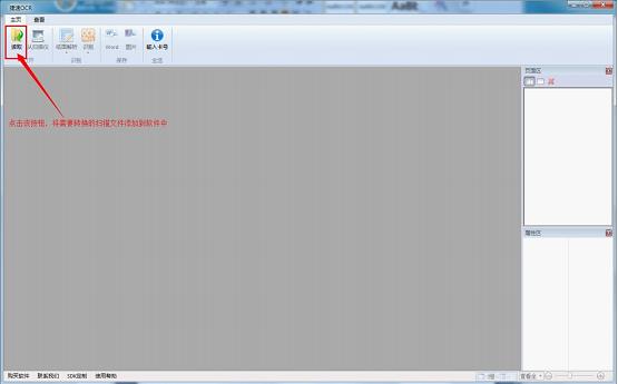 第二步,打开安装好的捷速扫描文件转换成word软件,大家可以看到如下的界面。大家可以点击按钮添加文件,也可以将其关闭,点击主界面中"读取"按钮,将需要转换的扫描文件添加到软件中。