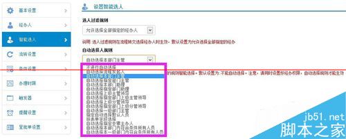 注:同样的道理,如果在自动选择人规则中设置的是上级主管领导等选项,此处就要查看相应的选项是否设置正确。