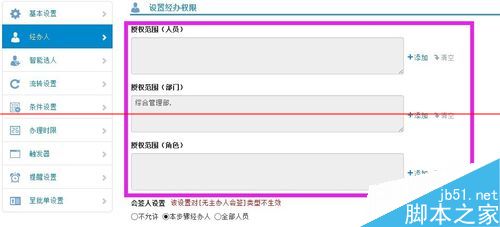 注:OA的日常使用过程中,对于部门管理、用户管理的维护,都需要对此处经办权限做相应的修改,如果组织中对相关部门进行了修改而此处没有做相应修改,就会出现问题。所以,作为OA管理员,考虑问题要全面。