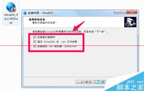 注意事项:安装软碟通时,要勾选"建立ultraISO与.iso文件关联"和"安装虚拟ISO驱动器(ISODriver)"两项。