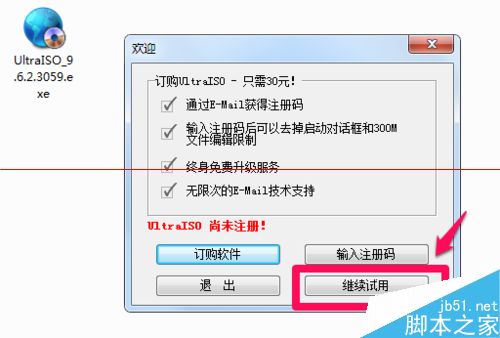 3、安装完成,打开软件,这里暂时可以选择"继续试用"