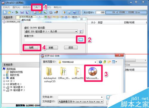 4、点击"工具"-"加载到虚拟光驱",在弹出的对话框里选择要加载的iso文件,然后点击"加载";