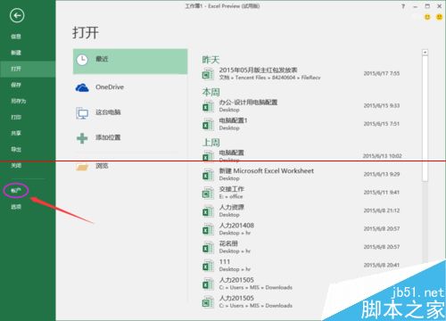 4、文件选择下面有非常多的内容,在这个界面中点击账号。