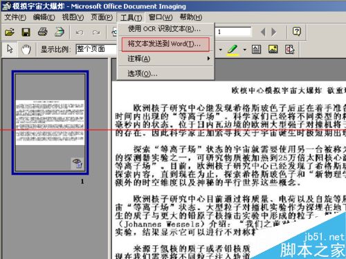 点击"菜单栏"中的"工具"选项中的"将文本发送到word"。