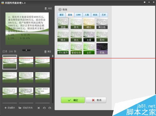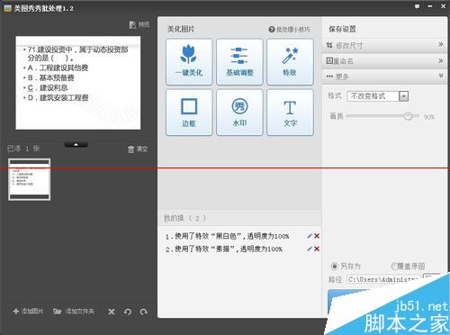 3、在特效里先选择黑白色,再选择素描,这时候深色背景就被去掉了,仅留下黑色字体