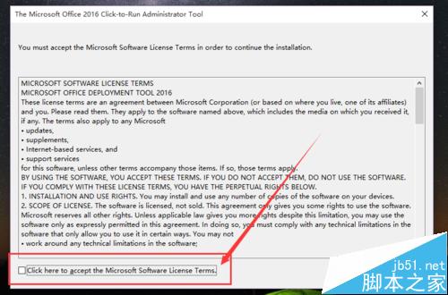 2、当我们下载完成Office 2016软件安装部署软件之后,将该软件放到桌面上,然后双击运行该程序,在弹出主页面中,点击同意相关协议并点击"继续"按钮。