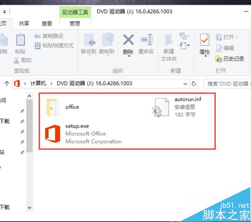 5、在虚拟光区中加载好Office 2016光盘映像文件以后,记住虚拟光驱的驱动器根目录,因为目录路径在后面修改配置文件时,是需要使用的。
