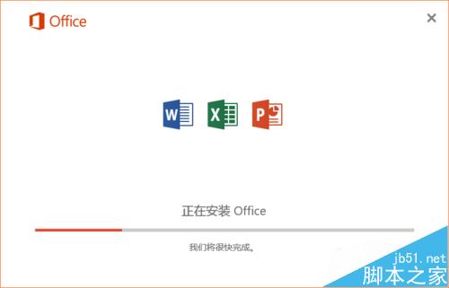 13、接下来,我们会看到Office 2016软件将默认只安装PPT、Word、Excel这三个组件,在等待五分钟左右的时间之后,Office 2016软件就会自动安装完毕啦,接下来,大家就可以尽情的使用啦,小伙伴们赶快试试吧。