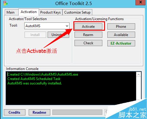 6、激活Office,上面安装KMS成功之后点击 "Activate"按钮开始激活