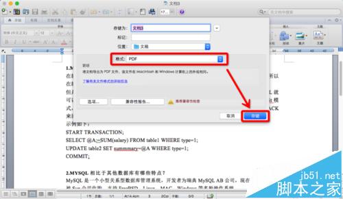 5、将图片文件放到Word文档后,按<shift+command+S>组合健,或者单击<文件>-<另存为>。在弹出的对话框中,存储为:<输入自定义的名称>,位置:<目标路径>,格式:<选择文档格式>,然后在单击<存储>按钮。