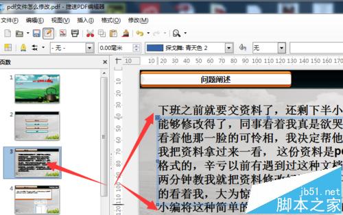 2、点击需要编辑的一页,选中需要修改的文字。选中后可以看到这行文字上出现了编辑框。拉动编辑框可以调节编文字范围。