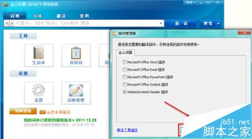 3、这里找到插件设置,可以设置金山词霸对PDF取词