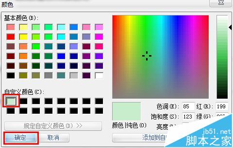 7、这样就可以看到对话框中的背景颜色显示我们刚改变了的果绿色。单击对话框下方的【确定】。
