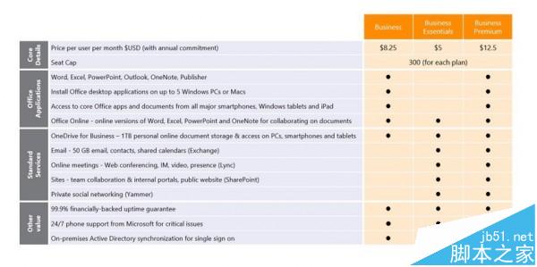 二、Office 365 Business:价格:8.25美元/用户/月(保底1年);