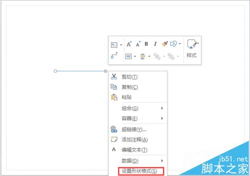 4、选定该线条,右键点击弹出下拉菜单,在下拉菜单里找到【设置形状格式】选项,如下图所示。