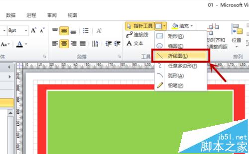 4、在"开始"菜单下找到"折线"工具,按图中指示画出线段,并调整其颜色和宽度,具体标准如图。