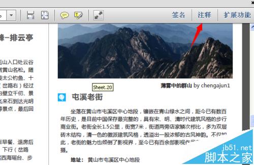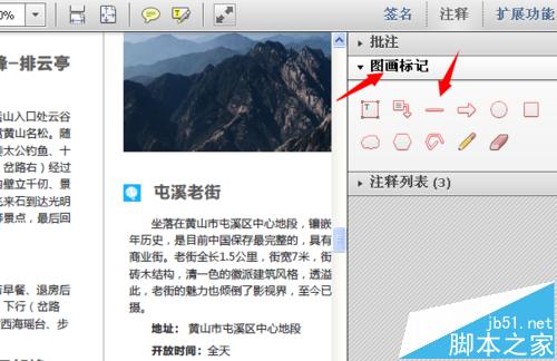 2、在打开的pdf文档页面的右上角点击"注释"按钮,如图所示。然后点击"图画标记"选项,这样您就可以在下面的图画中选择绘画线条。