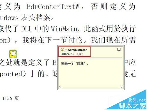 5、添加完成后,可以看到一个附注的图标,显示的非常简洁。把鼠标移动到这个图标上面,就会弹出一条附注内容的预览。