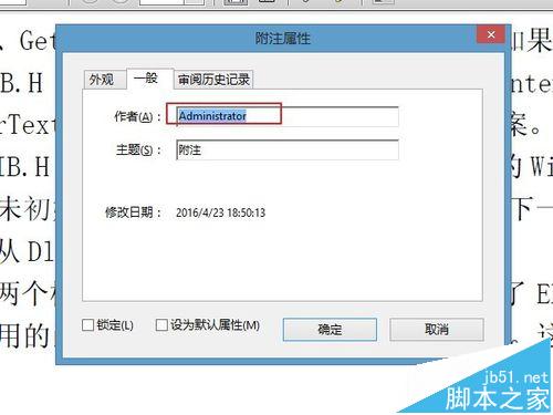 12、细心的你应该会发现,上面每次附注都是显示的作者都是"Administrator",这样就不能区分到底是谁添加的附着,或者谁回复的。这个作者实际上默认的是电脑的用户名,所以一般是"Administrator"。更改方法为,在附注"属性"切换到"一般"选项卡,在"作者"栏里面就可以输入你的名字或者其他等等。