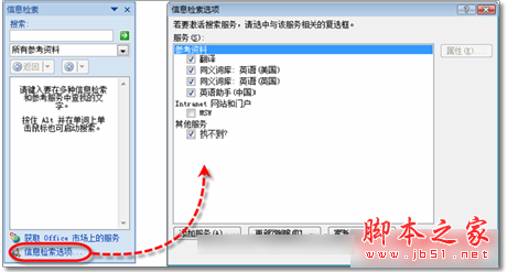 (2)单击"信息检索"任务窗格下方的【信息检索选项】超链接,打开"信息检索选项"对话框,如图2所示。
