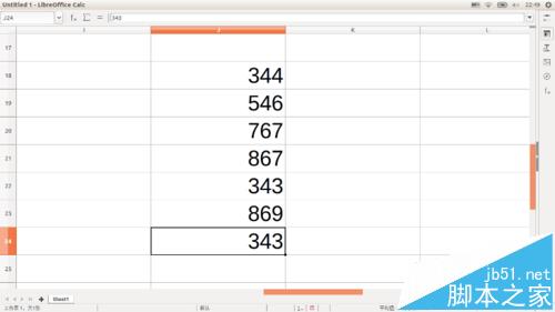 2、以 LibreOffice Calc 电子表格为例,在其中输入一系列数字,然后按住、拖动鼠标左键,选中这些数字。