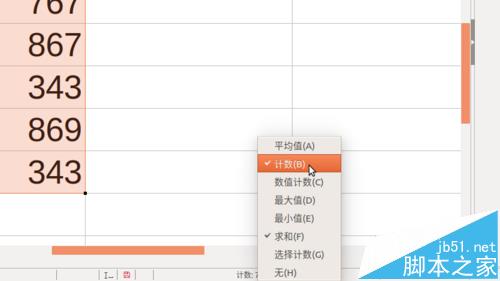 6、如图,在 LibreOffice Calc 状态栏中关闭了"平均值"的计算,打开了"计数"的计算。