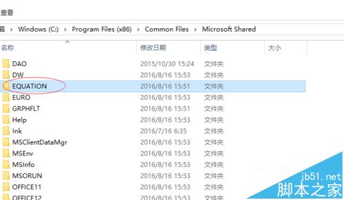 1、找到C:Program Files (x86)Common FilesMicrosoft Shared路径下的EQUATION文件夹