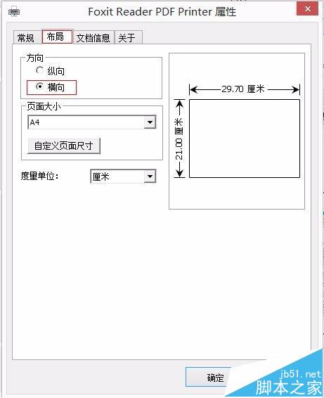 3、在弹出窗口中选择【布局】项,在方向中选择横向或纵向;