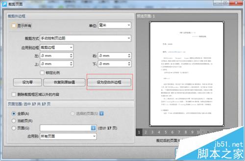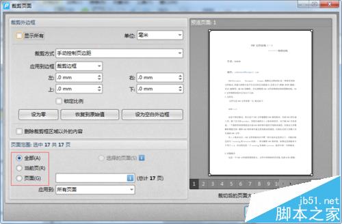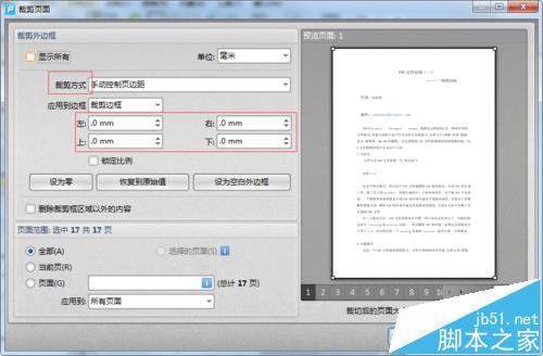 5、外边框设置完成后,我们在下面的页面范围中设置裁剪页面要执行的页面。可以是多个页面,多个页面输入时中间要用逗号隔开。