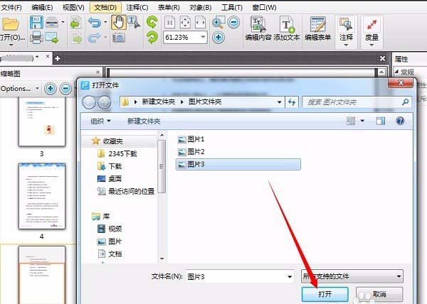 5、添加新的图片,选择"文档"-"添加图像"命令,然后在打开文件窗口中选择要添加的图片,点击"打开"后会接着弹出添加图像对话框。