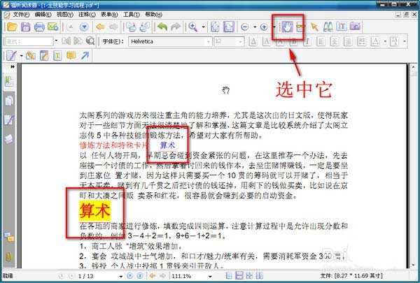 1、用"福昕阅读器"打开PDF文件。首先确认"常用工具"选项是选中状态,才能使用工具。