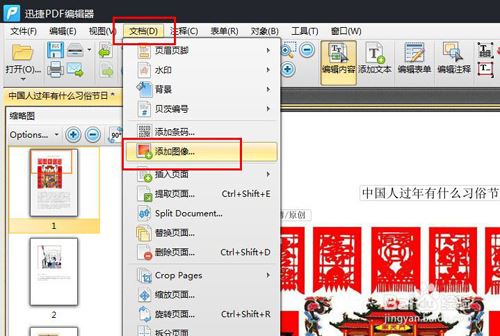 6、如果要添加图片的话,就单击文档按钮,然后找到"添加图片"功能并单击;