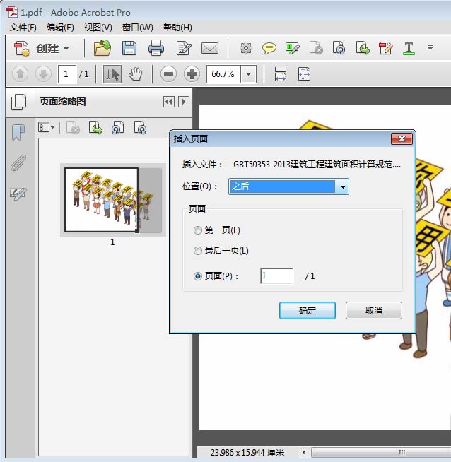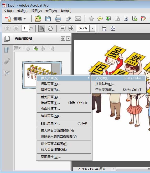 5、这时我们的文件已经插入成功了,同样在页面缩略视图里,选中第一页,右键-"删除页面"当然也可以用快捷键:Shift+Ctrl+D