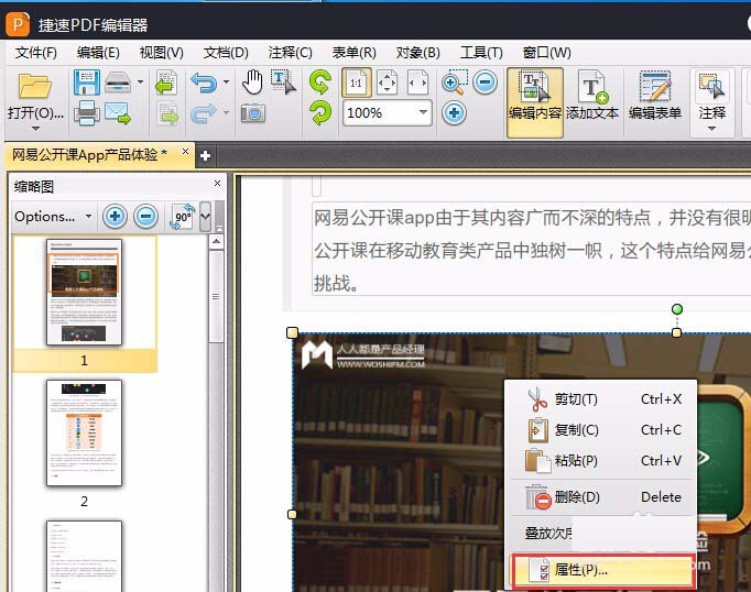 pdf文件中的图片怎么设置属性?