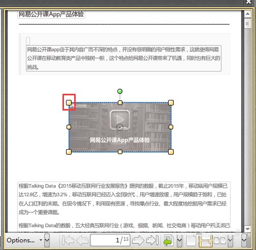 6、将鼠标移动至图片四周待其变成双箭头形状即可随意拉伸改变图像大小。利用以上的方法就能编辑pdf文件中的图片。