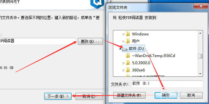 2、 单击"打开",在弹出的安装页面上点击"下一步"。再点击"更改"——"D盘"——"确定"——"下一步"。
