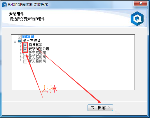 3、点击+号,将打勾的都去掉,点击"下一步"。