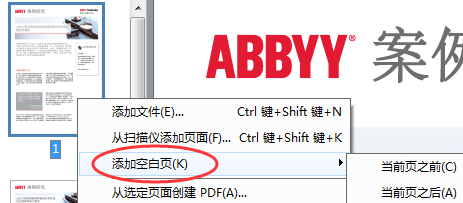 3、添加空白页面。如需添加空白页面,右击目标页面,点击添加空白页,然后根据需要选择添加到当前页之前或之后,新的空白页面将添加。