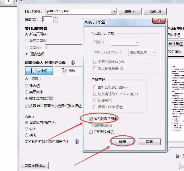 4、在高级打印设置里,找到作为图像打印,选上对勾后确定。