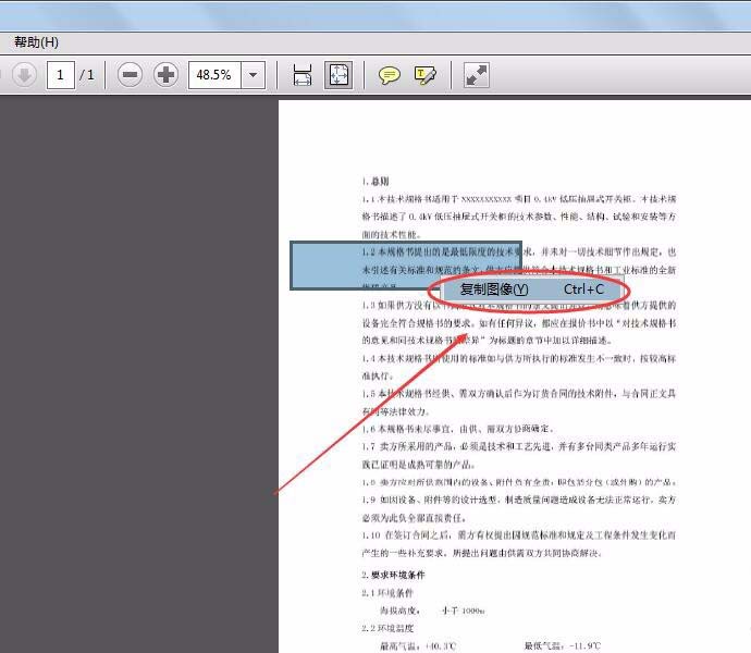 7、打开保存后的文件,右键可以看到,不能直接选中文字,智能选中图像,复制图像,让阅读者不能直接复制文字内容了。