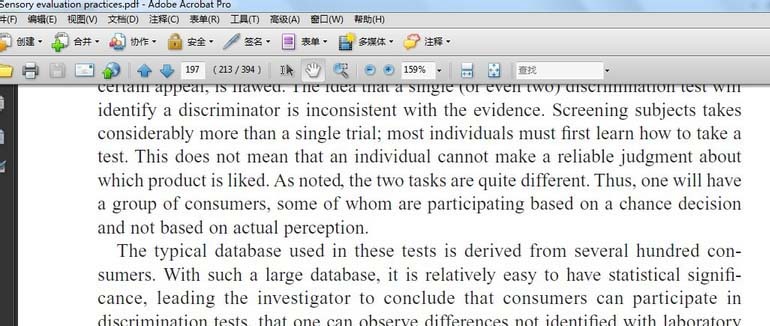 1、首先我们打开自己的PDF文件,我这里用书名为《Sensory evaluation practices》来给大家说明。