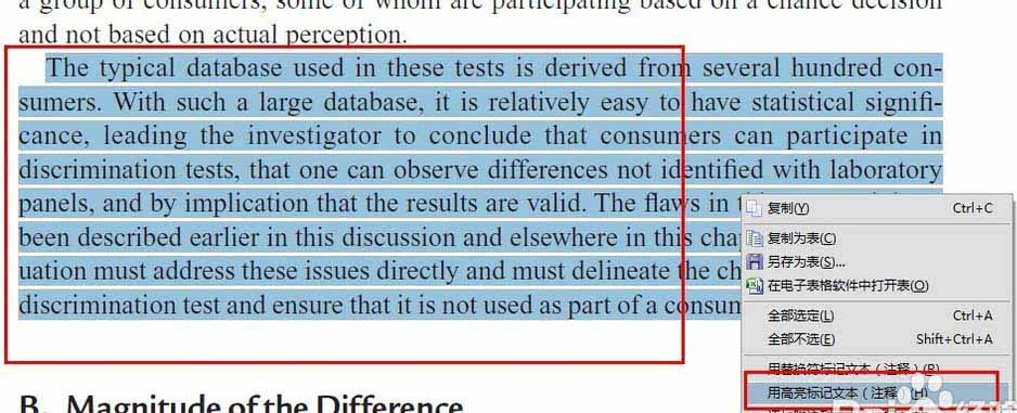 2、我们用文本选择工具选择我们要标记的字体,然后右击选中的任何部位,选择"用高亮标记文本"选项。如下图所示。