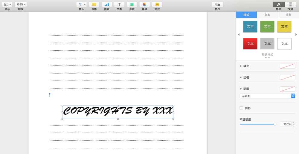 4、键入文本,例如:COPYRIGHTS BY XXX