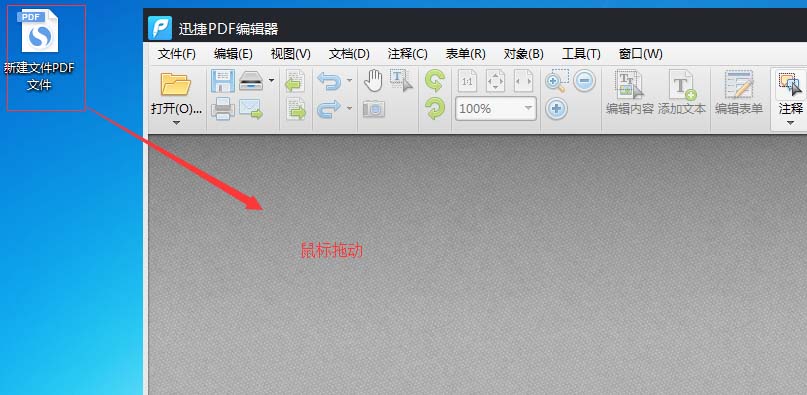 2、然后我们通过在打开的PDF编辑器上使用鼠标拖动方法来打开要编辑的文档PDF文件。